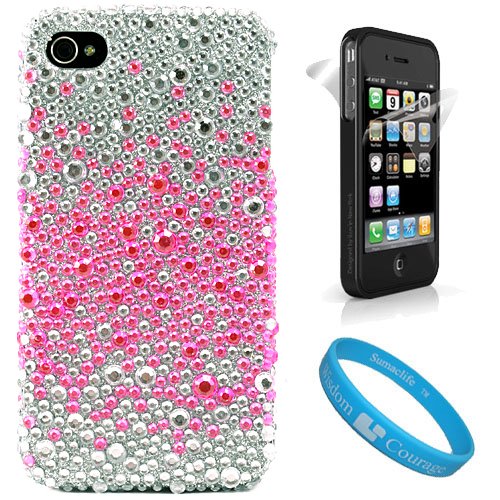 ▷▷▷Blackfriday Pink Diamante Protective Crystal Case Cover for Verizon Wireless New iPhone 4 (16GB, 32GB) 4th Generation and AT&T iPhone 4 + 2 Piece Clear Screen Protector for Front and Back of Apple iPhone 4 + SumacLife TM Wisdom Courage Wristband