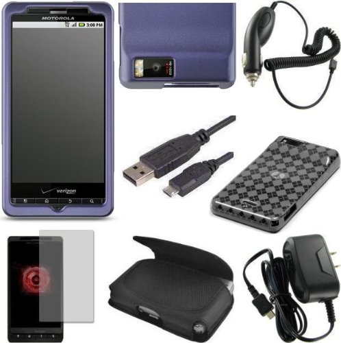 Cheap Accessory Bundle MOTMB810 (7in1) for Motorola Droid X Verizon Wireless - Custom Pack by MAGBAY - Car Charger/Travel Charger/Holster Pouch/Screen Protector/USB Cable/Checker Skin Case/Rubberized Hard Case - Purple | |